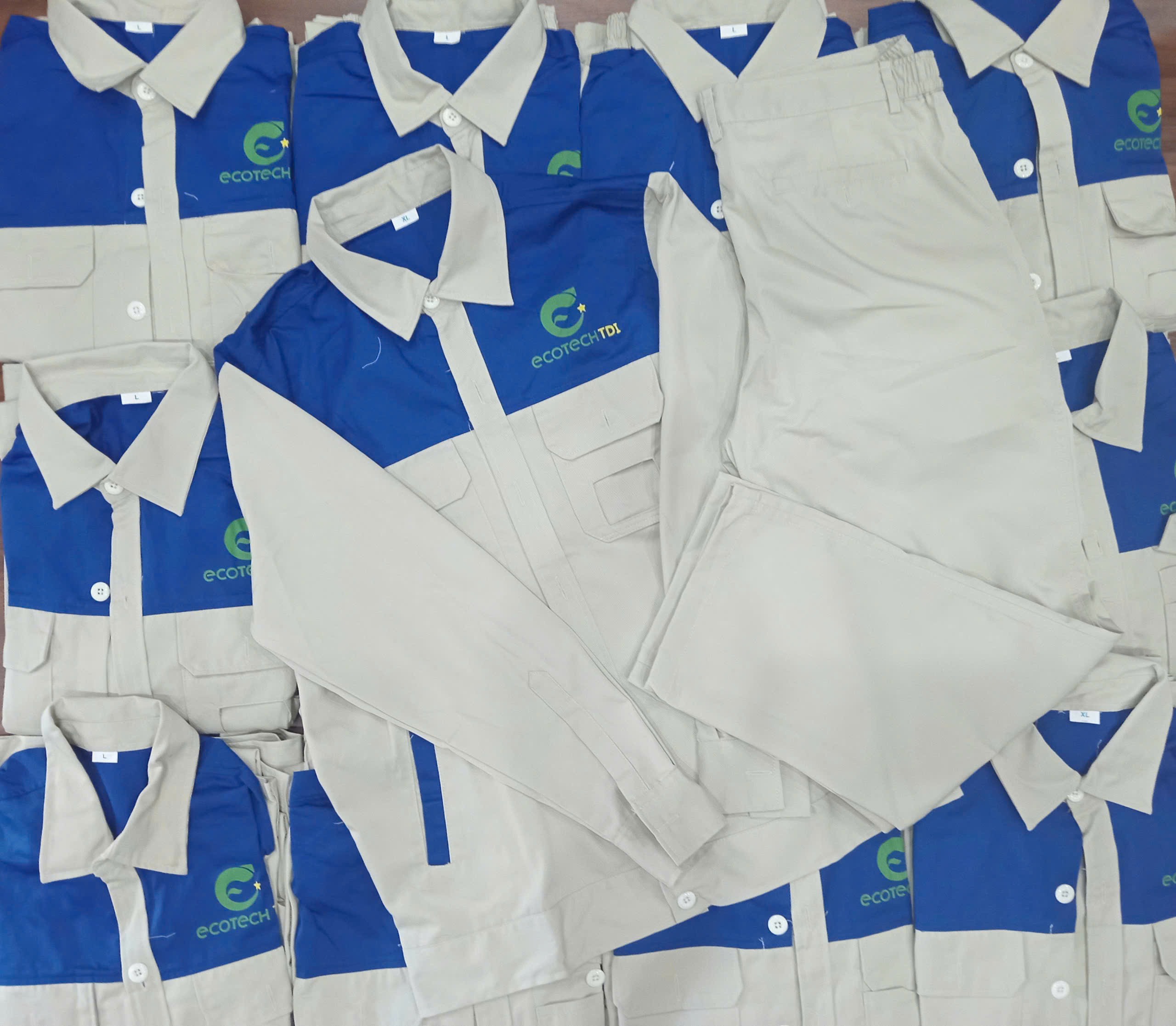 Yêu cầu may đo – in logo: Quần áo bảo hộ đặt may theo size, in logo doanh nghiệp giúp tăng nhận diện nhưng chi phí sẽ thay đổi tùy thiết kế.